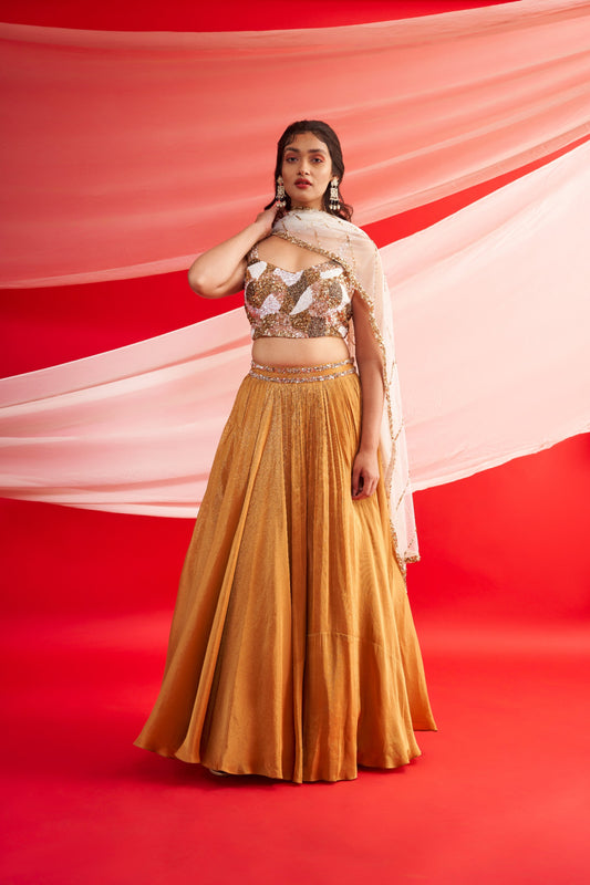 GOLDEN SHIMMER LEHENGA SETRegular price INR. 39,200.00Regular priceUnit price / per-