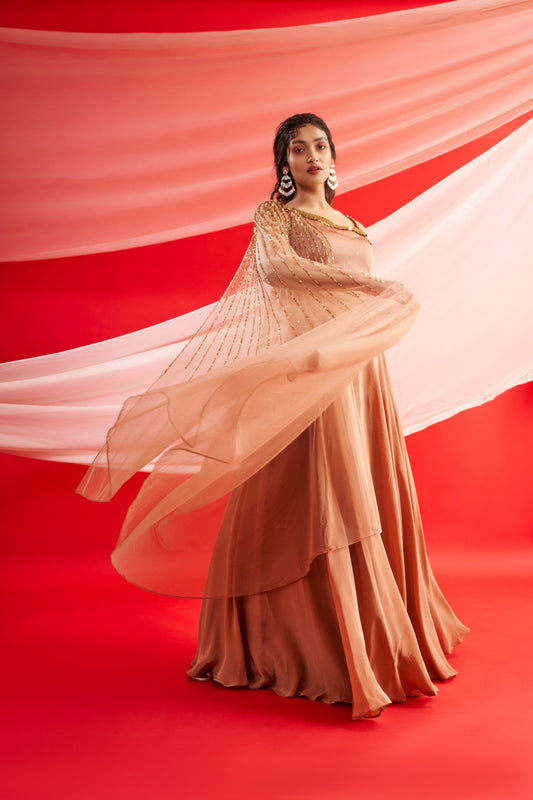 BRONZE GOWN WITH ATTACHED DRAPPED DUPATTARegular price INR. 35,840.00Regular priceUnit price / per-