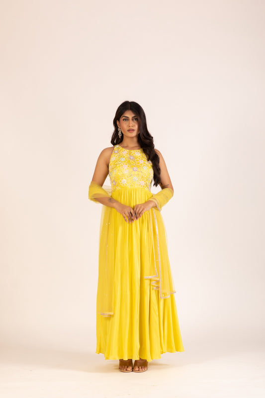 YELLOW PLEATED ANARKALI SET