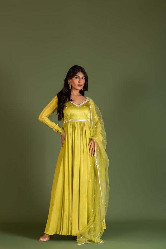 LIGHT MINT DRAPPED GOWN WITH ATTACHED DUPATTA