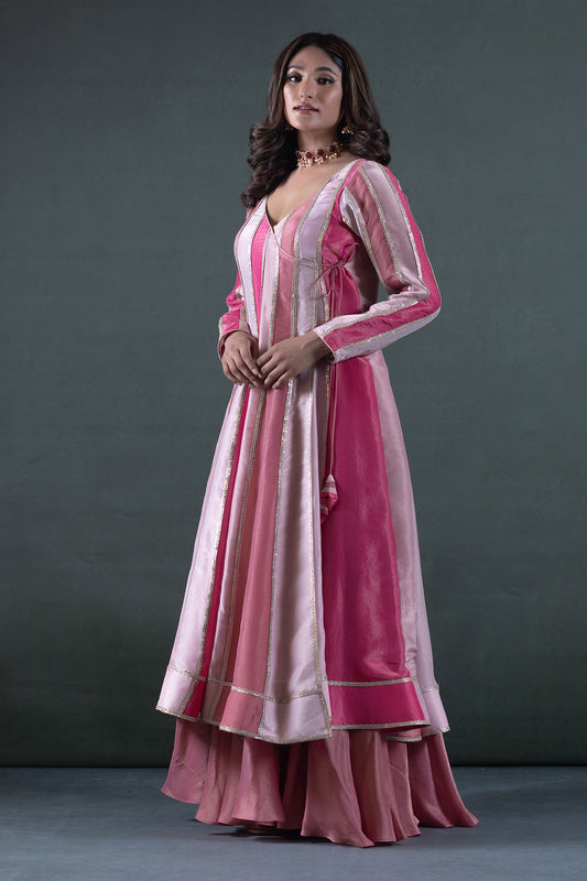 HOT PINK ANGRAKHA LONG TOP AND LEHENGA SET