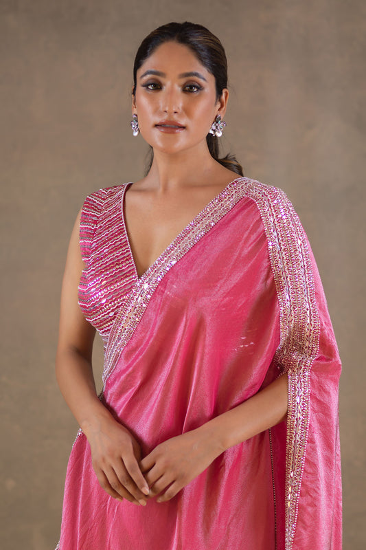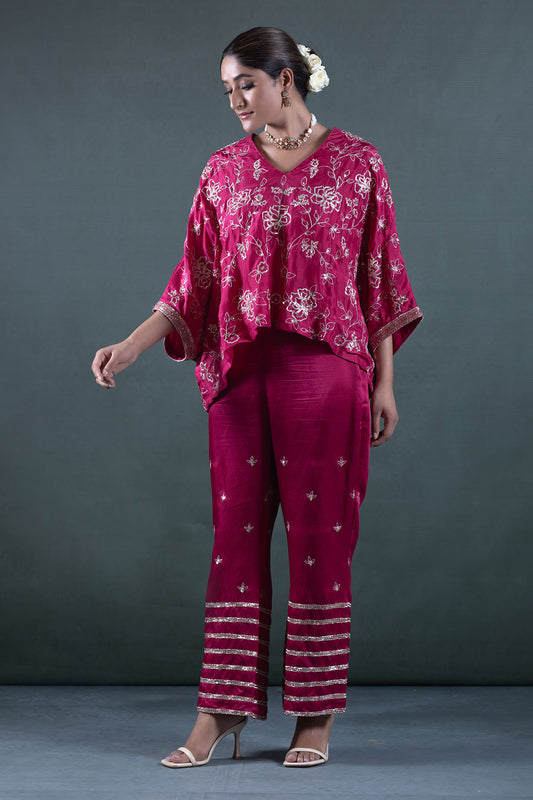 FUCHSIA PINK SIDE JACKET AND PLAZZO SET