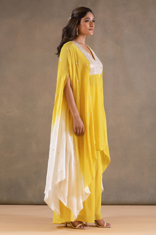 YELLOW AND WHITE KAFTAN PLAZZO SET