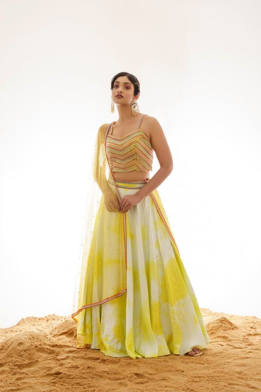 LIME GREEN OMBRE LEHENGA SET WITH COLOURFUL EMBROIDERED BLOUSE