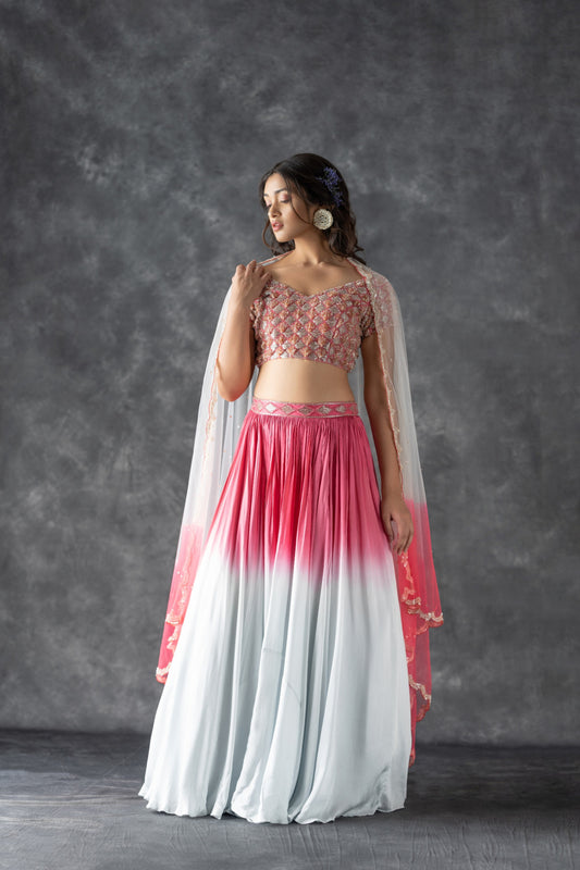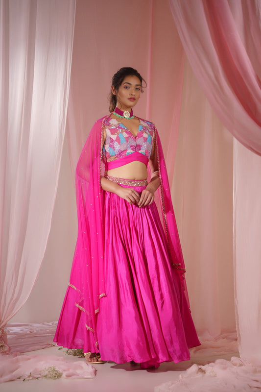 HOT PINK FLORAL EMBROIDERED LEHENGA SET