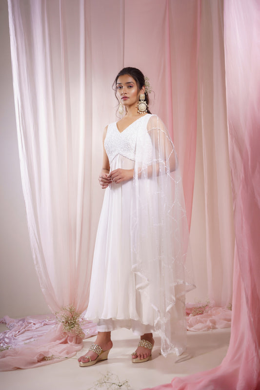 OFF WHITE SELF EMBROIDERED SUIT AND PLAZZO SET