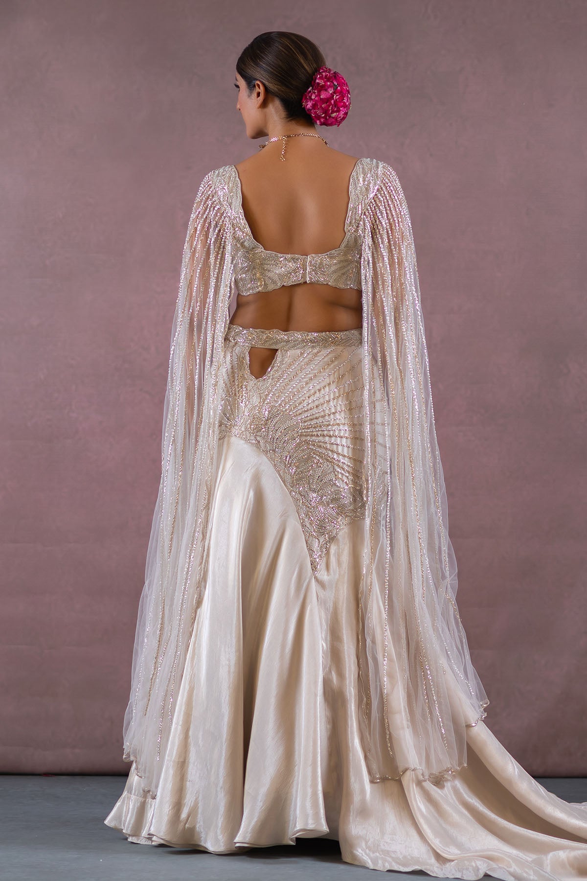 BEIGE FISH-CUT TRAIL LEHENGA SET